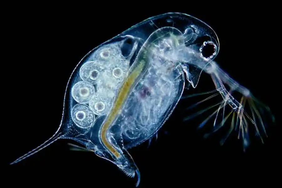 Движение дафнии происходит в две фазы. Во время первой фазы дафния под действием удара антенн делает скачок косо вверх; во время второй фазы медленно опускается вниз на распростертых в разные стороны антеннах.
