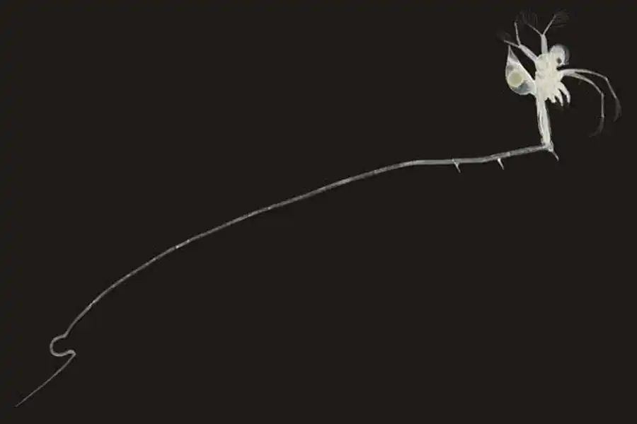 Тело цилиндрическое, состоит из головы, груди, брюшка и постабдомена. Большая голова делится перетяжкой на две части; впереди находится большой, почти шаровидный глаз, подразделенный на дорсальный и небольшой вентральный отделы; в задней части головы находятся антеннальные мышцы. Антеннулы короткие, неподвижные, отходят от нижней стороны головы непосредственно за глазом. Антенны сильно развиты, эксоподит четырехчленистый, эндоподит трехчленистый, каждая ветвь с семью щетинками. Мандибулы сильно изогнуты, с острыми концами. Ноги первой пары очень длинные, в несколько раз превосходят длину остальных ног; ноги последней, четвертой пары рудиментарные.