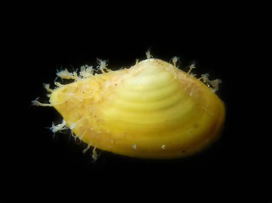Раковина выпуклая, задний конец каждой створки с двумя радиальными складками, идущими от макушки к заднему концу створки и к нижнему краю вдавленности, образованной складками. Макушки выпуклые. Поверхность створок гладкая, с тонкой концентрической исчерченностью, матовая или тускло блестящая. Лигамент внутренний. Замок таксодонтного типа. Замочный край удлиненный, дугообразно изогнутый, с многочисленными V-образными зубами, в каждом ряду не более 20 зубов. Имеется два замыкательных мускула. Сифоны короткие, наполовину сросшиеся. Окраска раковины зеленовато-желтая или зеленовато-коричневая, с темными полосами или пятнами.