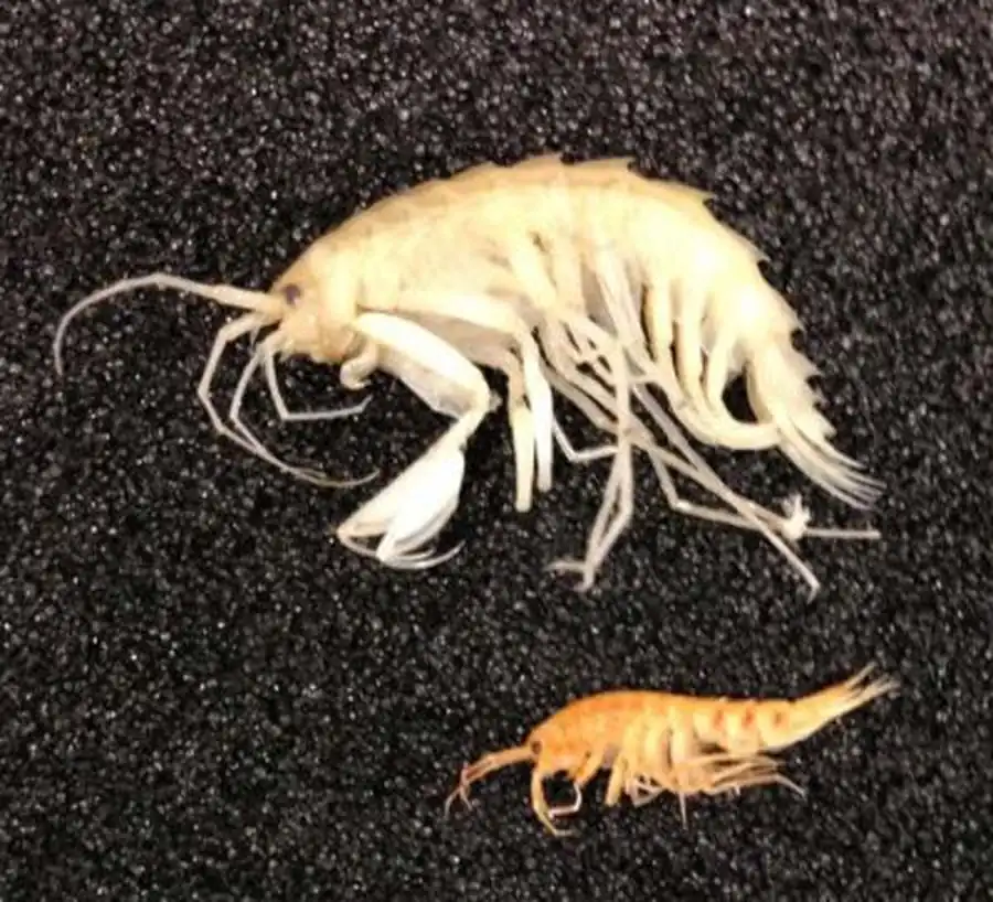 Среди переоподов резко выделяются по своему строению переоподы двух первых пар, называемые гнатоподами, на конце которых находится ложная клешня, образованная сильно расширенным шестым члеником, проподитом, и подвижным тонким и изогнутым дактилоподитом. К внутренней стороне коксальных пластинок прикрепляются тонкостенные жабры, а у самок, кроме того, широкие овальные пластинки с щетинками по краям (оостегиты), образующие выводковую камеру (марзупиум), в которой проходит развитие отложенных яиц. Брюшко подразделено на два отдела. Передний отдел брюшка, плеон, состоит из трех сегментов, боковые края которых расширены в большие эпимеры; каждый сегмент несет пару двуветвистых плавательных ног, плеоподов. Задний отдел брюшка, урус, также состоит из трех сегментов; каждый сегмент несет пару двуветвистых прыгательных ног, уроподов. Между уроподами последней пары помещается тельсон, имеющий вид небольшой широкой пластинки, с выемкой по заднему краю.