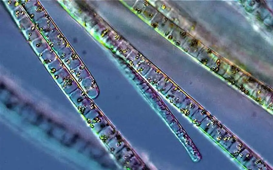 Beggiatoa имеют вид длинных, подвижных нитей, толщиною 2—4 нм; внутри клеток находятся многочисленные зерна серы. Границы между клетками становятся видимыми только после исчезновения зерен серы, что достигается путем выдерживания бактерии в свободной от сероводорода воде.