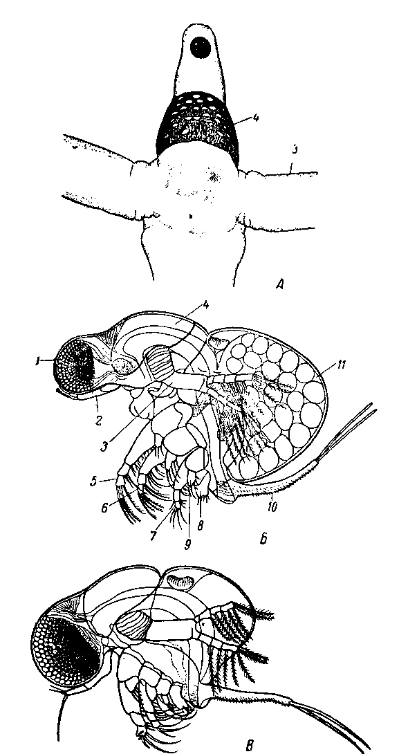 Рассматривается строение головного щита Leptodora или Polyphemus.