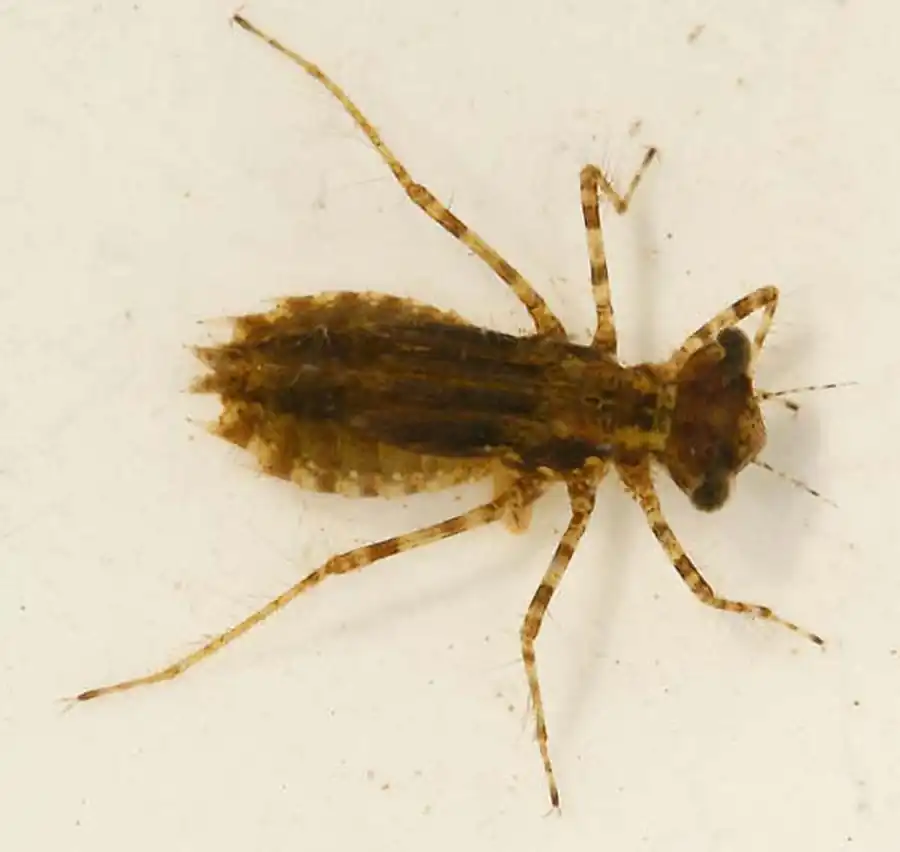 У личинок, относящихся к подотряду Zygoptera и отличающихся присутствием стройного, тонкого, цилиндрической формы брюшка, хвостовые придатки представлены длинными и уплощенными пластинками, ранее часто называвшимися хвостовыми жабрами. Всего имеется три хвостовых пластинки —две боковых и одна средняя. При основании хвостовых пластинок находится темноокрашенная полоска, по которой пластинки обламываются при автотомии. Утраченные хвостовые пластинки восстанавливаются только при последующих линьках, поэтому могут встретиться личинки с двумя или одной пластинками или даже совсем без них. Вдоль каждой хвостовой пластинки проходят один или два центральных трахейных ствола, от которых отходят многочисленные трахейные ветви. Из этих личинок выходят небольшие, медленно летающие стрекозы, с широко расставленными глазами и одинаковым строением крыльев обеих пар.