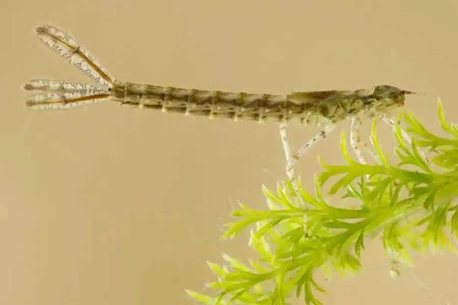 Личинки стрелки, Erythromma, являются одними из самых распространенных личинок стрекоз; живут в разнообразных водоемах среди растений.