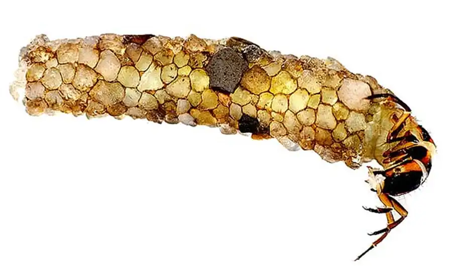 Перед вылетом насекомого куколка разрушает верхнюю крышку своими крепкими мандибулами, затем выходит из домика и выползает из воды по растениям или иным твердым предметам.
