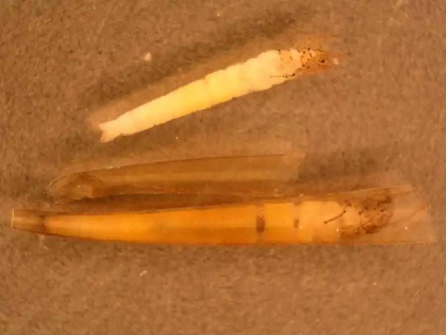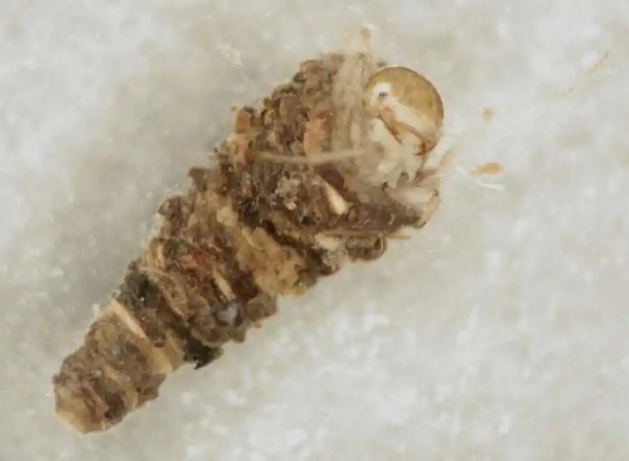 Домик пестреем из секрета; трахейные жабры находятся на первом — восьмом сегментах