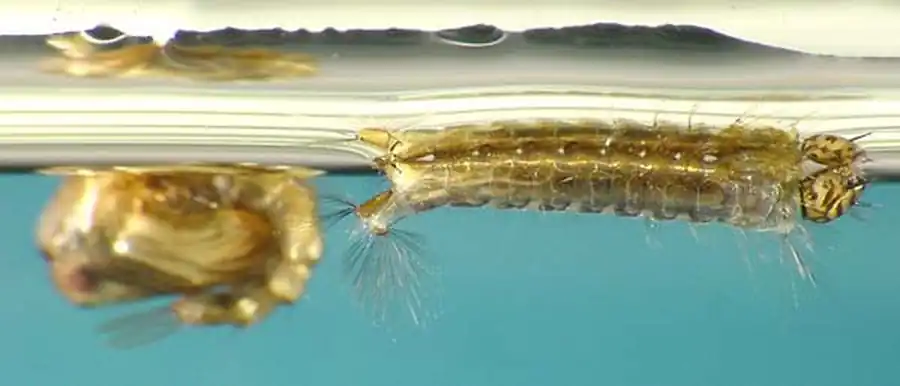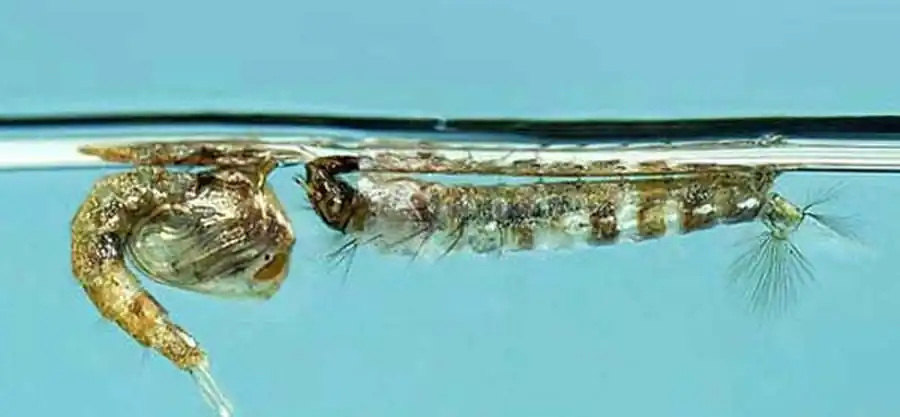 Подвесившись к поверхностной пленке воды и повернув голову на 180°, чтобы ротовое отверстие приходилось бы наверху, личинки при помощи быстрых ударов (до 200 ударов в минуту) двух пучков волосков (вееров), расположенных на верхней губе по бокам средней лопасти, вызывают в поверхностном слое токи воды, направленные к ротовому отверстию.