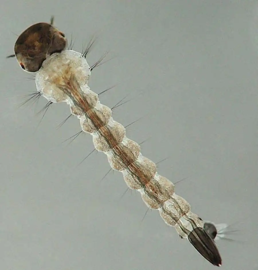 Пищевые частицы отфильтровываются волосками, находящимися на мандибулах и максиллах, и скапливаются в ротовой полости; крупные частицы раздробляются зубцами мандибул и нижней губы. В течение суток личинка четвертой возрастной стадии профильтровывает около 20 мм3 воды. Личинки питаются без выбора, на этом основано применение для их уничтожения ядовитых пылевидных инсектицидов, распыляемых по поверхности воды. Личинки Anopheles могут, кроме того, соскребывать перифитон с подводной растительности при помощи зазубренных волосков находящихся на средней лопасти верхней губы.
