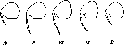 Цикломорфоз Bosmina coregoni (цифры обозначают месяцы).