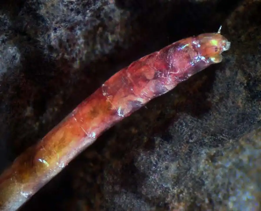 Мандибулы с тремя зубцами, над которыми расположен один зубец в другой плоскости (так называемый внутренний зубец). Зубчатый край нижней губы почти прямой, с двумя срединными зубцами; боковые ряды содержат по семи зубцов; срединные и вторые боковые зубцы значительно выше остальных зубцов. Паралабиальные пластинки с острым наружным углом. Задние ложные ножки короткие.