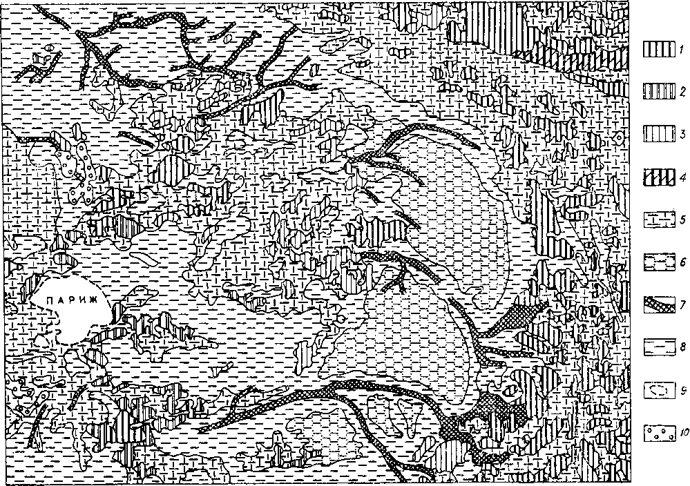 Карта растительности Парижского бассейна, опознанной на телевизионном изображении (по Б. В. Виноградову, 1970).