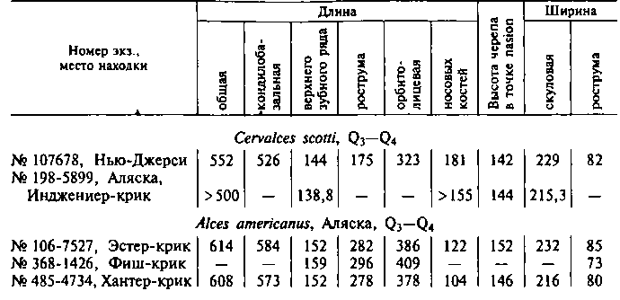 Размеры черепов оленелося Скотта н настоящих лосей с Аляски (АМЕИ), мм