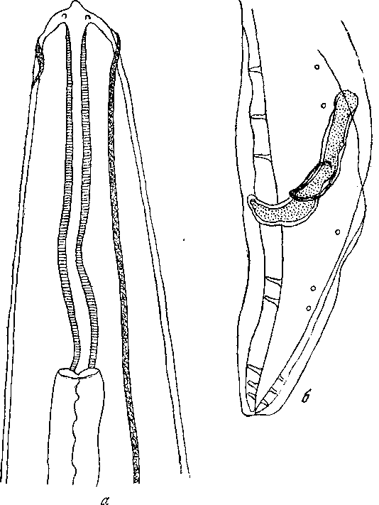 Строение головного и хвостового конца самца этой нематоды говорит о том, что она, по-видимому, не может быть отнесена к надсемейству Acuarioidea.