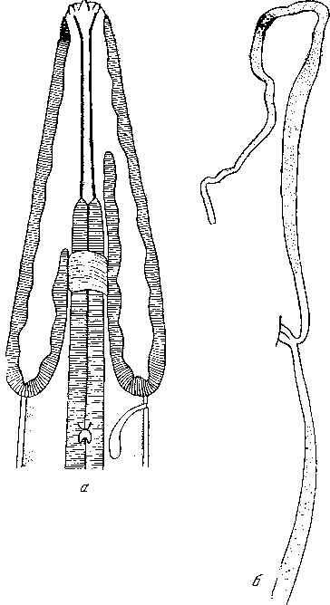 а — по Сера, 1916; б — по Сера, 1915) а — головной конец; б — фрагмент половой трубки самки