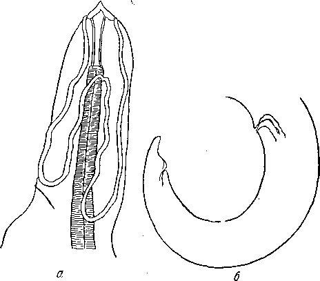 Самка. Тело достигает 3,3 мм длины при максимальной ширине 0,2 мм. Тело настолько изогнуто, что представляет собою почти замкнутый круг, так что для исследования доступна была латеральная сторона паразита. Имеются две конических латеральных губы, увенченных хитинным колпачком. Передняя часть тела в области канатиков сужена, достигая 0,12 мм в диаметре. Сразу позади этого места тело становится значительно шире. Имеется по два канатика на каждой стороне, субвентральная пара канатиков загибается вперед вдоль латеральных полей на расстоянии 0,26 мм от переднего конца тела, а субдорзальная пара канатиков идет несколько дальше назад, образуя загиб кпереди на расстоянии около 0,3 мм от переднего конца тела. Экскреторное отверстие отстоит на 0,28 мм от переднего конца тела. Хитинизированный фаринкс достигает 0,08 мм длины, пищевод разделяется на две части, переднюю мышечную 0,44 мм и заднюю железистую часть 1,3 мм длины. Вульва открывается на расстоянии 1 мм от кончика хвоста; вагина загибается назад. Матки дивергентные. Анус отстоит на 0,1 мм от кончика хвоста. Яйца с толстой скорлупой, содержат эмбрионы, достигают 0,018 X 0,009—0,010 мм.