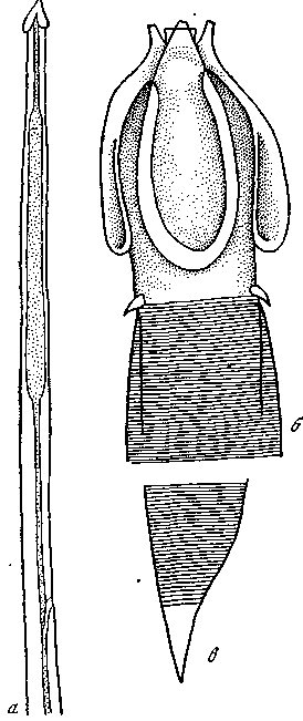 а — передний конец; б — головной конец; в — хвостовой конец самки