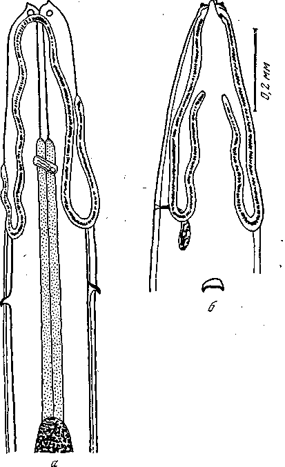 Локализация: пищевод. Головные концы были внедрены в слизистую оболочку.