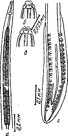 a — передний конец; б— головной конец латерально; в — головной конец доргально; г — задний конец самца