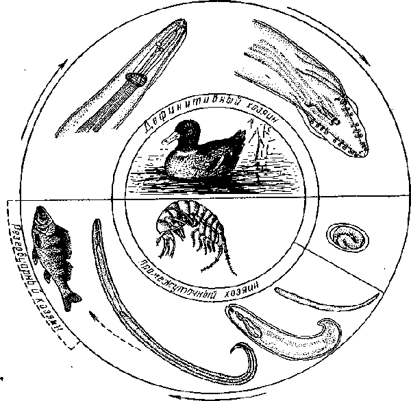 Цикл развития Streptocara crassicauda (Creplin, 1829) (по Ивашкину, 1961)