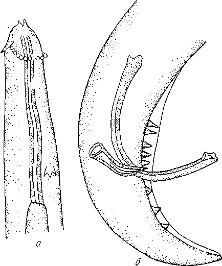 Самец. Тело достигает 3,6 мм длины при ширине 0,11 мм. Клоака лежит на расстоянии 0,13 мм от хвостового конца. Имеются 4 пары преанальных и 3 пары постанальных сосочков. Спикулы очень неравной величины, более крупная достигает 0,237 мм длины и 0,0083 мм ширины; короткая спикула длиною 0,068 мм при ширине 0,014 мм.