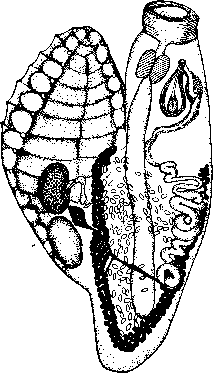 Aspidogaster limacoides Diesing, 1834 (по И. Быховской и Б. Быховскому, 1934)