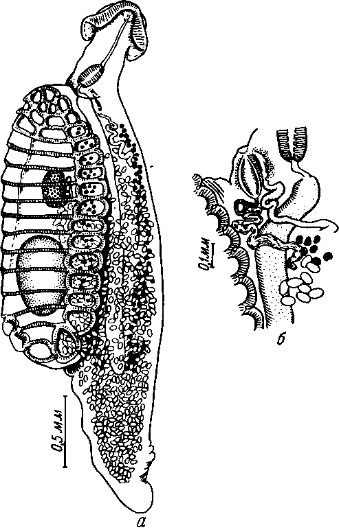 a — общий вид; б — выводные половые протоки