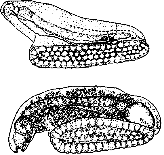 Остается еще открытым вопрос о значении этих своеобразных органов. Так как они не имеют наружных отверстий, то можно предполагать, что это либо присасывательные, либо органы питания. Что касается первого предположения, то можно было бы думать, что «тентакули» выпячиваются наружу и при этом углубляются в слизистую оболочку желудка хозяина, чтобы этим придать гельминту устойчивое положение. Такое предположение не очень правдоподобно ввиду того обстоятельства, что большой и мускулистый присасывательный диск вполне, повидимому, достаточен, чтобы укрепить гельминта на его месте.