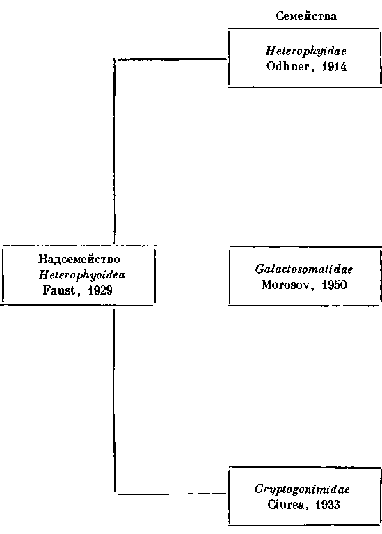Классификация трематод надсемейства Heterophyoidea Faust, 1929 (по Ф. Н. Морозову, 1952 )