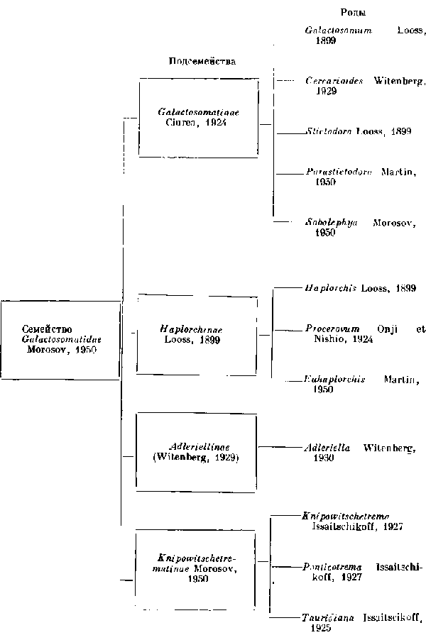 Классификация трематод семейства Galactosomatidae Morosov, 1950 (по Ф. Н. Морозову, 1952)