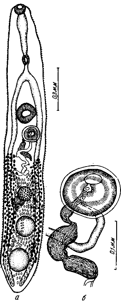 a — общий вид мариты; б — половая присоска
