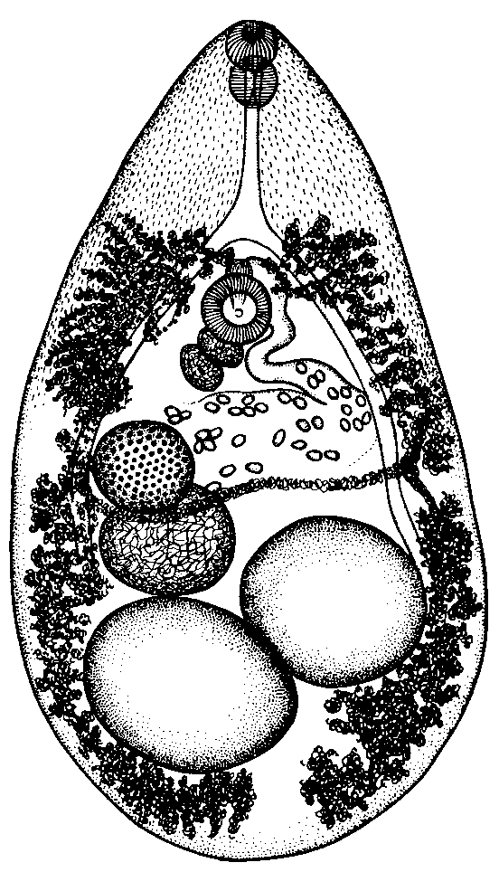Самая интересная анатомическая особенность этого паразита — строение выводных половых протоков.