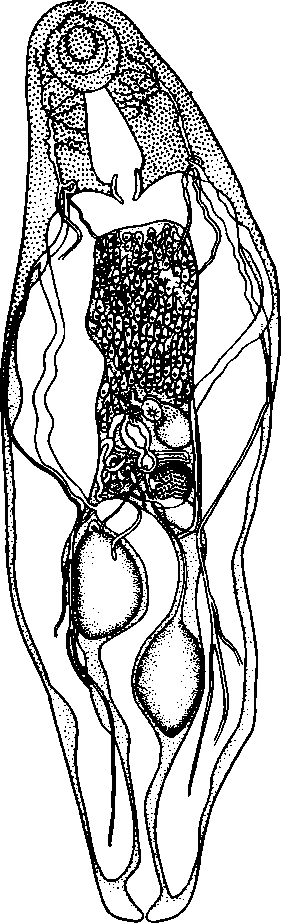 Galactosomum cockleariforme (Rud., 1819) (по Пратту, 1911)