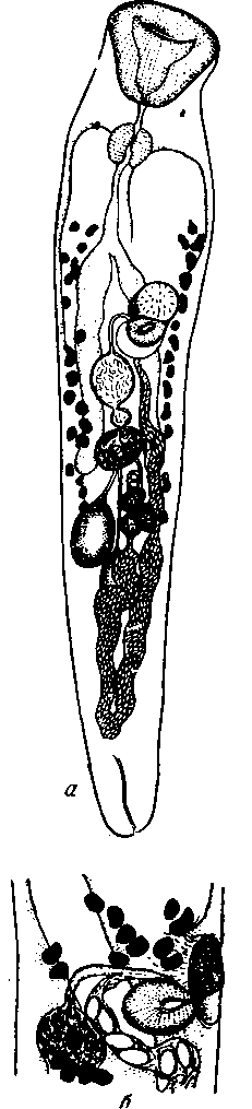 а—общин вид; б—выводные половые протоки