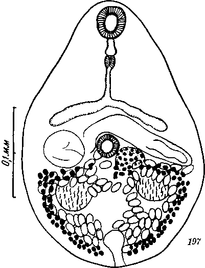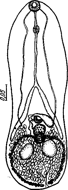 Maritrema acadiae (Swales, 1933) (по Суэлсу, 1933). Общий вид дорзально