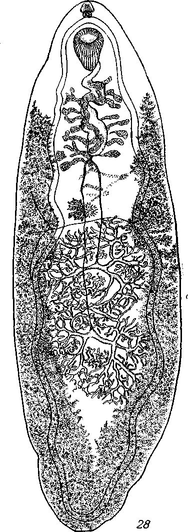 Fasciolopsis buski (Lankaster, 1857) (по Скрябину, Подъяпольской и Статировой, 1929)