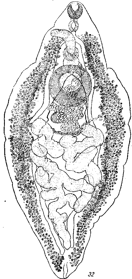 Диагноз. Fasciolopsinae. Тело листовидное, снабженное головным выростом резко выраженной конической формы, от которого отходят «плечики», закругляющиеся и переходящие в боковые края тела.