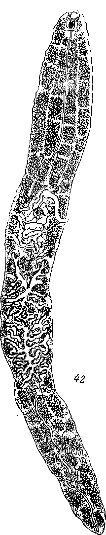 Длина тела 9 мм из печени моржа (Odobaenus rosmarus) - Odhneriella rossica Skrj., 1915.
