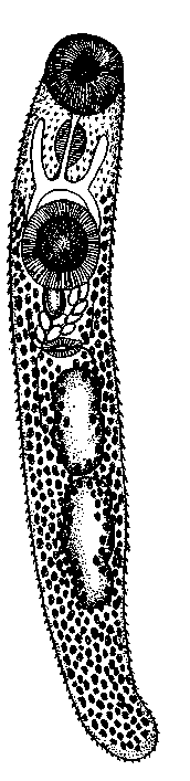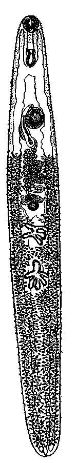 Описание вида. Длина тела 13—18 мм, при ширине 1.0— 2.1 мм. Кутикула вооружена мелкими шипиками. Ротовая присоска 0.4—0.55, мм, длина префаринкса 0.5—0.52 мм, фаринкса 0.45—0.6 X 0.31—0.35 мм. Пищевод почти незаметен. Слепые передние отростки кишечника простираются до ротовой присоски; концы кишечных стволов доходят до заднего конца тела.