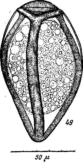 Яйцо Oschmarinella sobolevi. Вид апикальный (по Скрябину, 1948)