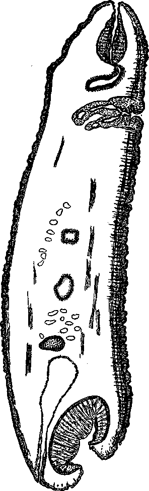 Описание вида (по Фишедеру, 1903). Тело достигает 10—15 мм длины, имеет либо почти совсем прямую форму, либо слегка согнуто нейтрально. Максимальной ширины, равной почти половине длины, тело достигает у заднего конца, на уровне присоски; отсюда оно постепенно суживается вперед, так что еще на середине передней половины тела его ширина остается равной 1/4 его длины. На поперечном срезе видно, что тело почти круглое или только слегка сплющенное в дорзо-вентральном направлении.
