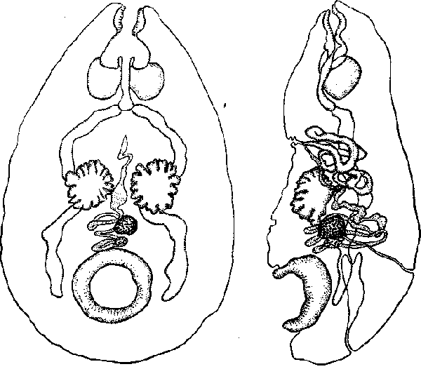 Описание вида. Тело длиной 5—5.76 мм; при ширине 3.5 — 4 мм; паразиты кирпично-красные в свежем виде и мясо-красные при консервировании в алкоголе. Тело овальной формы; головной конец несколько притуплен, хвостовой конец резко закруглен, почти полукруглой формы, латеральные края выпуклые; наибольший диаметр —несколько кзади от середины, приблизительно в области семенников; головной конец снабжен нежным коническим сосочком. Половые отверстия расположены вентро-медианно в передней части средней трети длины тела, позади бифуркаций.