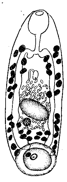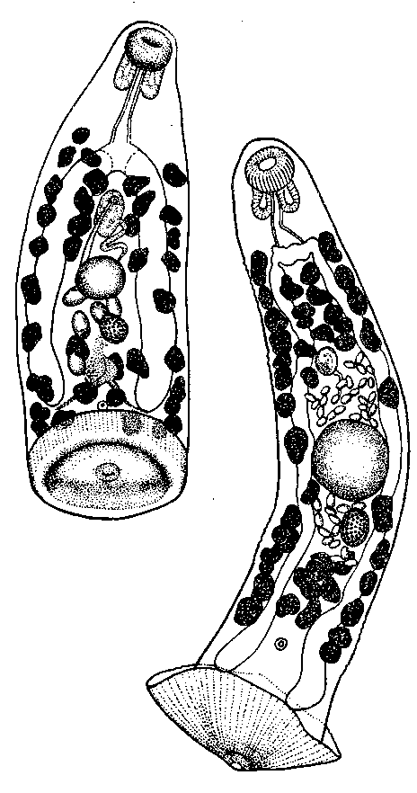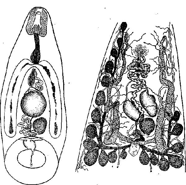 Тельце Мелиса и оотип позади яичника. Лауреров канал открывается в области, противоположной яичнику.