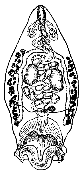 Задняя присоска обладает довольно тонкими стенками и обычным мышечным строением.