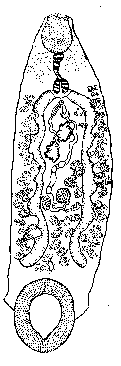 Промежуточные хозяева: Planorbis trivolvisn Helisoma antrosa (Conrad).