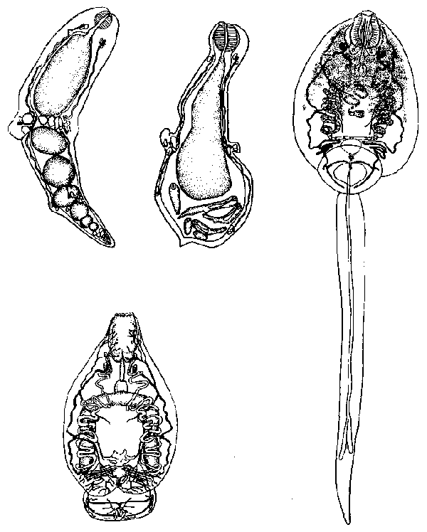 Цикл развития Allassostomoides parvum (Stunkard, 1917) (по Stunkard, 1929)