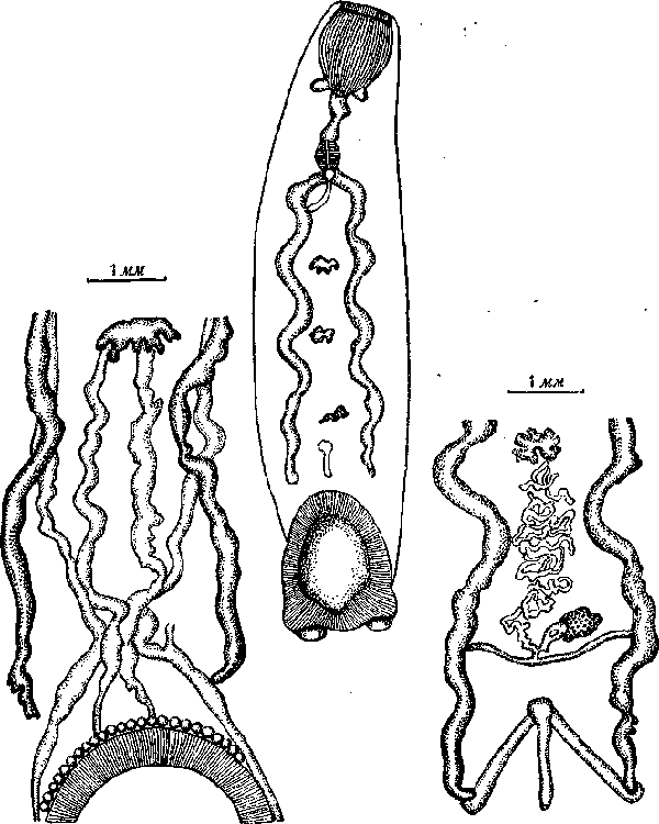 Лопастные семенники располагаются медианно один позади другого в центральной зоне тела, достигают 0.73—0.94 Х 0.46—0.7 мм. Половой бурсы нет. Свободно лежащий семенной пузырек достигает 1.11—1.16 мм длины, при ширине 0.12—0.13 мм. Половое отверстие медианно, на уровне бифуркации, непосредственно позади фарингеального бульбуса. Лопастной яичник, 0.5—0.53 X 0.39 — 0.48 мм, сдвинут слегка влево, располагается позади семенников, кпереди от экскреторного отверстия. Тельце Мелиса, 0.38—0.5 X 0.15—0.24 мм, лежит медианно, прилегает к яичнику. Семеприемник, 0.5—0.51 X 0.4— 0.56 мм, располагается возле яичника. Матка с поперечными петлями, лежит интерцекально. Желточники имеют диффузный характер. Яйца 0.132X0.117 мм.