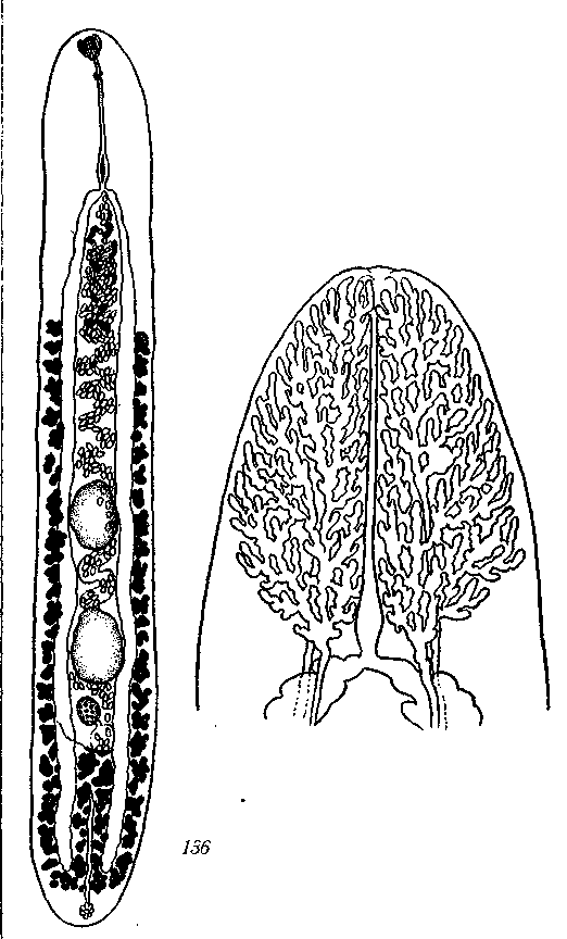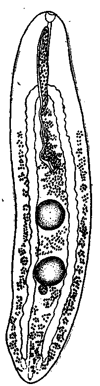 Желточники состоят из очень грубых больших фолликулов и лежат непосредственно у края тела. Они начинаются перед семенниками, приблизительно на уровне заднего конца семенного пузырька, и достигают заднего конца тела. Здесь они, не прерываясь, огибают слепые концы кишечных стволов и направляются в медианную зону. Они с обеих сторон подходят близко друг к другу, но никогда не сливаются. Передней их границей является тельце Мелиса.