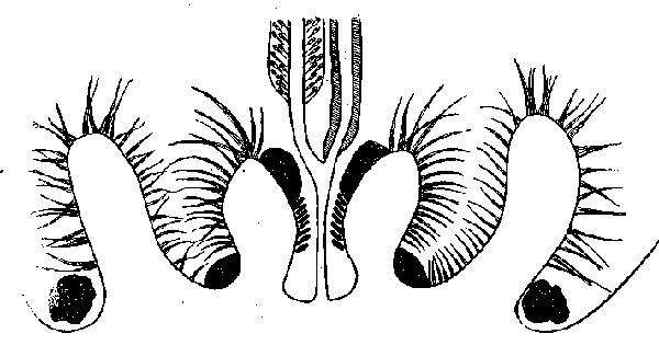 Схема половой клоаки парамфистоматат (по Насмарку, 1937)