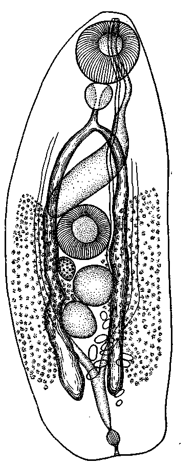Cephalogonimus burmaniia Chatterji, 1936 (по Чаттерджи, 1936)