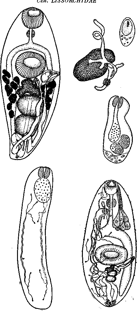 Triganodistomum mutabiie (Cort, 1918). Марита, яйцо и личиночные стадии (по Уоллесу, 1941)